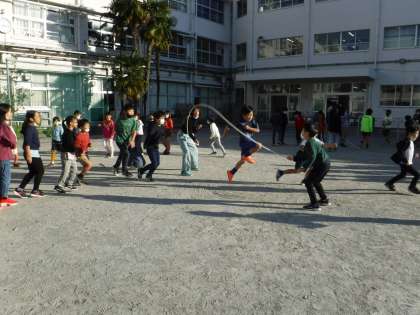 朝の練習へのご協力ありがとうございます。「はい、はい、はい、はい・・・」の掛け声をかけながら、長なわとびをしています。長なわとびの記録が職員室前に掲示されています。励みの一つになっているようです。記録も大事でしょうが、そこにこだわるのではなく、目標をめざしたり、友達との関わりを深めたりすることに繋がっています。