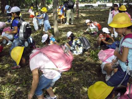 クヌギやシイのどんぐりを袋いっぱいに拾うことができました。