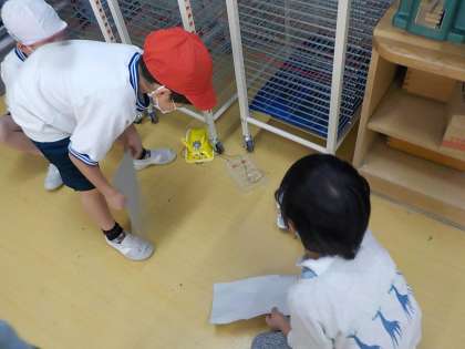 「どれだけ動くか競争だ」「ここをもっとあけたらたくさん動くよ!」