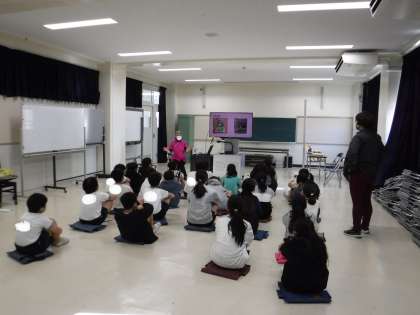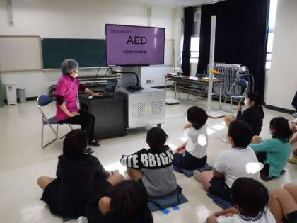 計測の前に保健指導がありました。5年生のテーマは、「けがの手当て」でした。AEDについても学びました。