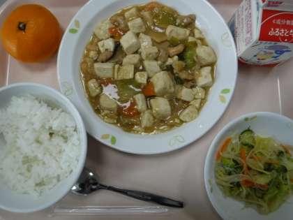 本日の献立 ごはん 牛乳 四川豆腐 春雨サラダ みかん