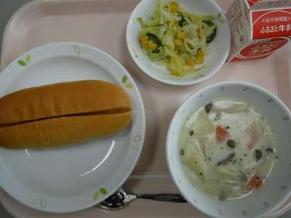本日の献立 ジャムサンド(マーマレード) 牛乳 クリームシチュー