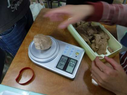 3年生の理科で、ものの重さは、形を変えると重さも変わるのか、予想を立てながら調べました。