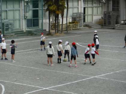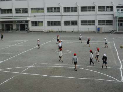 3年生の校庭体育では、ラインサッカーに取り組んでいます。今日は、前半と後半で役割をかえてゲームをしました。