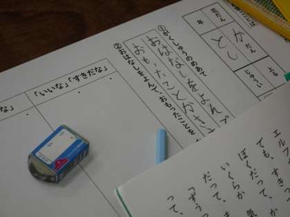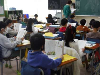「ずっと、ずっと、大すきだよ」の文学的文章の学習をしています。この学習では、お話を読んで感じたり思ったりしたこと、登場人物の変化などを友達と話していきます。今日は、学習の1時間目だったので、範読を聞いたり、音読をしたりしました。