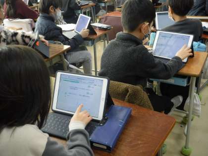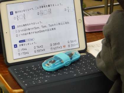 1年間の学習内容を終了し、今まで学習したことのまとめに入りました。ドリル問題やAIドリル「キュビナ」に取り組んだり、先生からロイロノートで送られてきた問題に取り組んだりしました。
