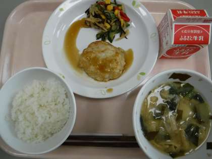 本日の献立 ごはん 牛乳 豆腐入りさくさくつくね 大根とひじきのサラダ みそ汁