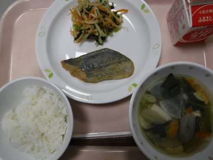 本日の献立 ごはん 牛乳 魚の西京焼き おひたし 根菜汁