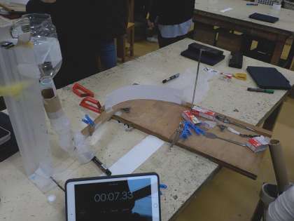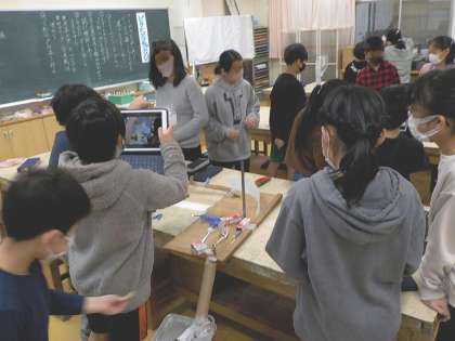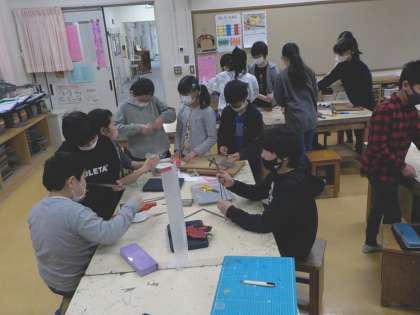 のルールをもとに、図工室にある用具を組み合わせて活動しました。