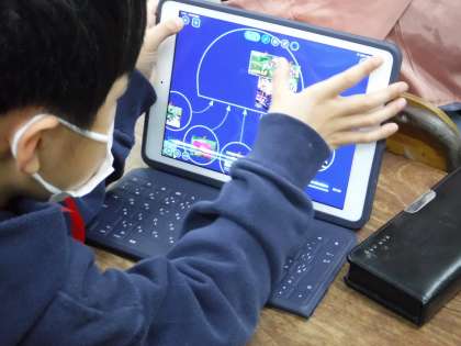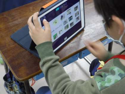 入学してから1年間、いろいろなことができるようになりました。今までの学習などを振り返り、クラゲチャートを使って、自分ができるようになったことを整理していきました。撮りためた写真や動画、文章などを選んで、工夫して整理していきました。「マスターメダルも入れよう。」「縄跳びを撮ったのも入れよう。」「思い出がありまくっている!!」夢中になって取り組んでいきました。