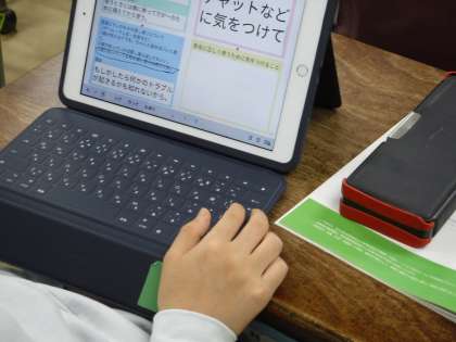 子どもたち一人一人が正しい知識を身に付け、自身や他者の安全を守りながらSNSの利用ができるように、都より配布されている「SNS東京ノート」も活用しながら、発達段階に応じて情報モラルについて考えさせる取組をしています。