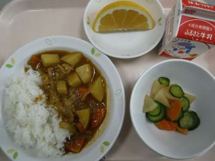 本日の献立 カレーライス 牛乳 シャキシャキ野菜 河内晩柑