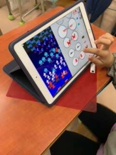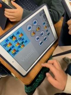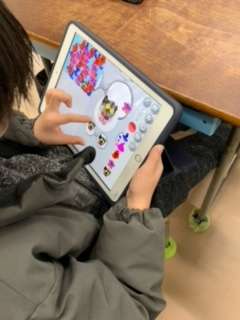 1年生の時に、「パソコン先生プロジェクト」で、5年生から教えてもらった「ビスケット」のプログラミング。2年生になって、自分が表したい設定を考えてプログラムし、よりステキな作品が作れるようになりました。