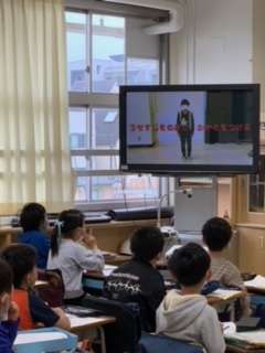 5.6年生の体育委員会の子どもたちが、基本的な気をつけの姿勢や行進の仕方などをクイズ形式で動画に撮って編集し、体育集会で全校児童に配信しました。