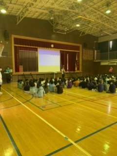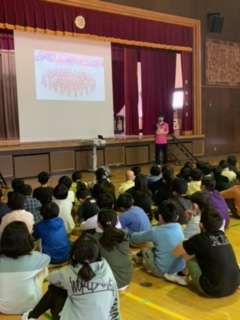 5.6年生合同の集会を行いました。運動会に向けて、高学年としての前向きな取り組みについて、みんなで確認し合いました。