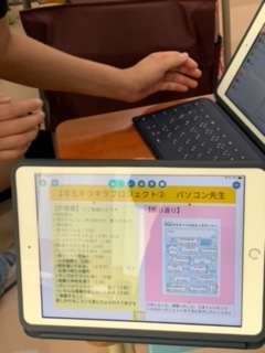 2時間目は6年生が「パソコン先生」となって、iPadの使い方などをペアになって優しく教えました。