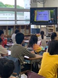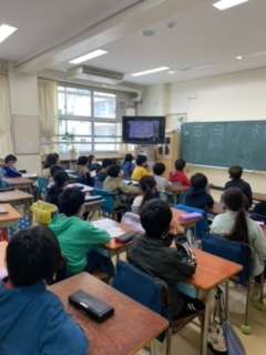 今日の全校朝会は、校長室と看護当番の教員の教室から行いました。連休明けでしたが、みな前向きに話をしっかり聞いていました。