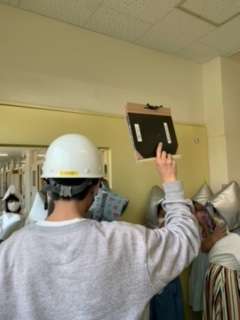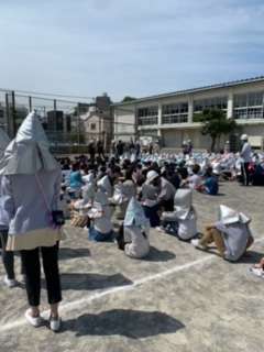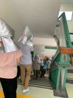 水曜日に、火災を想定した避難訓練を行いました。今回は、防火扉を通っての避難の仕方も行いました。