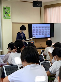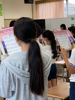 まず、常時活動として、階名の読み方を覚えて楽譜を読むことをねらいとして、階名ワークに取り組みました。教員が例えば「ファ」と問題を出し、子どもたちは、楽譜に書かれた音符をロイロノートに提出していきます。