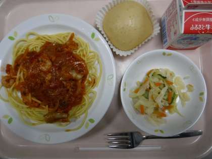 本日の献立 スパゲッティ地中海ソース 牛乳 野菜のレモンじょうゆかけ