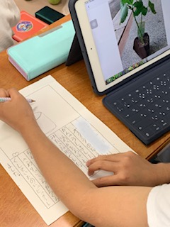 2年生の国語の学習です。育てたい野菜を視点にそって丁寧に観察しメモをとりました。そして、メモをもとに観察したことを記録する文章を書きました。観察したことがよくわかるように書きました。