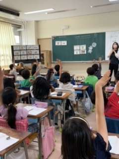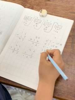 日常生活と関係づけて、加法の計算を活用する授業でした。全員で発表したり、ペアで話し合ったり、ノートに計算したりしました。