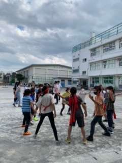 運動会では、紅組も白組も工夫しながら、力一杯応援します。練習にも熱が入ってきました。