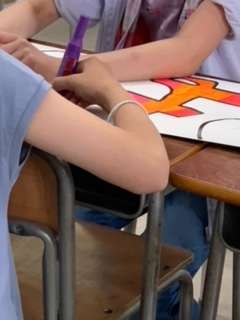 運動会では、途中経過を得点板に表示しますが、最後の最後は閉会式まで得点は秘密です。今日の係活動で、採点係は得点を隠す「お楽しみカバー」を作成しました。