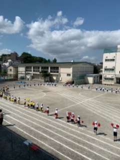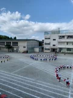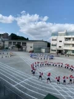 運動会に向けて、通し練習をしました。リズムに合わせて楽しく踊っています。