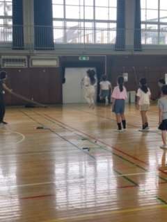 なわとび指導員や上級指導員が工夫したリズムなわとびなどを披露する運動会の「なわとびアトラクション」。練習を重ねています。