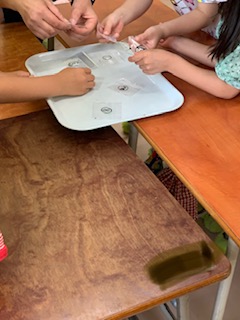 アサガオを育てている1年生。裏庭にもっと他にもお花を育てたいという思いをもちました。その願いを叶えるために、今日は担任が8つの種を用意しました。気になる種はどれかな?どの種がどのお花が咲くかな?みんなで予想しました。