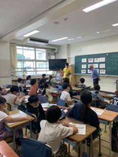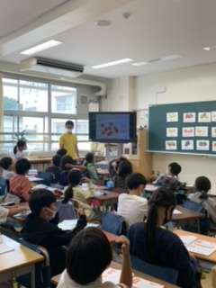 3年生の外国語活動は、担任とALTで行います。今日は、果物カードを用いて、How many?の学習をしました。