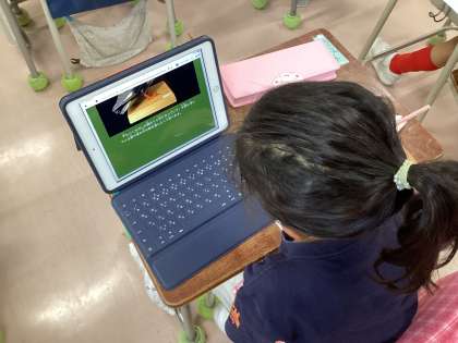 国語「くちばし」の学習の最後に、自分たちでクイズを考えました。タブレットを使って、様々な鳥のくちばしを観察して、形やくちばしの使い方、どんなえさを食べるのかを調べました。調べたことをワークシートに記入して、まとめることができました。この後、グループの友達と、クイズを出し合って、さらに学びを深めていきます。
