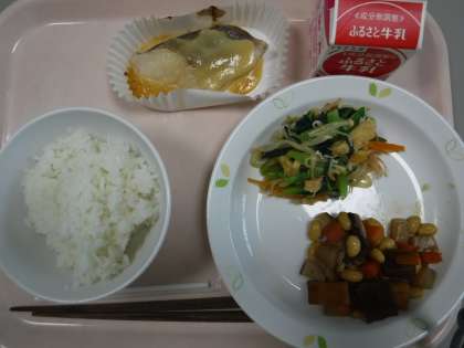 本日の献立 ごはん 牛乳 魚のみそマヨネーズ焼き おひたし 五目豆
