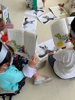1年生の国語です。「おおきなかぶ」の学習で、お話に出てくる役を決めて、動きながら声を出してお話を楽しみました。グループでの相談も上手にできました。