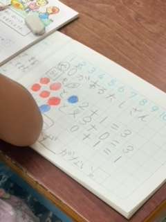 1年生の算数です。0の加法の意味を理解して計算の仕方を考えました。
