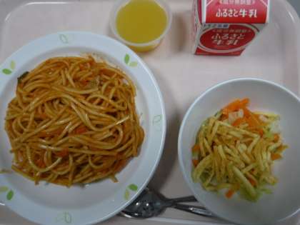 本日の献立 スパゲッティナポリタン 牛乳 じゃがいものハニーサラダ みかんゼリー