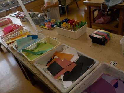 色をつけたり、色画用紙やスズランテープを飾ったりと思い思いのアイデアを加えていきます。
