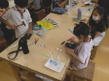 身近な材料を用いて、タイヤが動く仕組みを学び、楽しく走るおもちゃをつくる活動です。