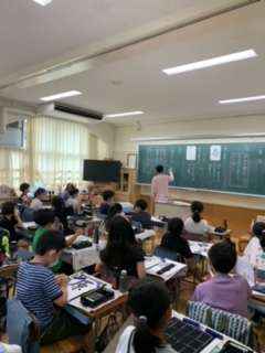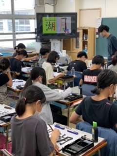 3年生以上の学年は、毛筆の学習があります。静かに集中して取り組んでいます。写真は、4年生、3年生、6年生です。