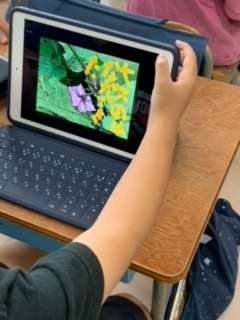 生活科で、自分が育てたい野菜を育ててきた2年生。タブレットにその成長の写真をたくさん撮りためてきました。その写真を整理すると共に、写真を選んで文字で説明を付け加え、iMovieを活用してムービーを作成しました。