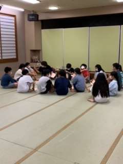班長会、レク係が大広間で明日の打ち合わせをしました。あと30分で消灯です。