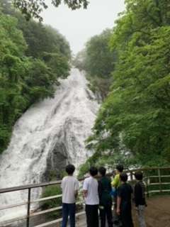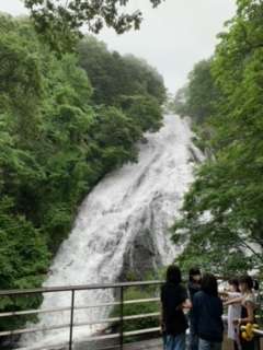 湯滝を見学しました。とても美しく迫力ある滝の姿が現れるや否や歓声が上がりました。