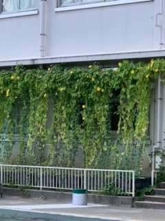 1年生前の校舎にはツルレイシやヘチマなどの「緑のカーテン」があります。理科で4年生が植物の学習にも活用しています。