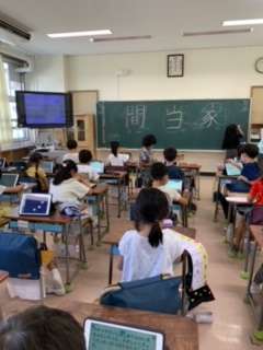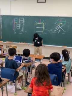 2年生の教室をのぞくと、新出漢字の学習をしていました。クラスの友達に教えていたのは、クラスの子ども。子ども先生が、分かりやすくポイントを教えていました。教え方が上手で分かりやすいと称賛されていました。代わりばんこに子ども先生が教えていくようです。