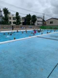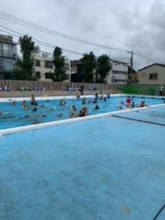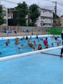 水にも慣れてきた2年生です。最後に「水中宝探しゲーム」をしました。先生が密かに持っている「宝」と同じ色、同じ形、同じ大きさ、全部が揃った「宝」を水中から探した子の勝ち。先生がどの「宝」を持っているかは、最後まで分かりません。夢中で取り組みました。