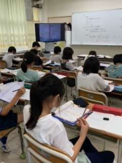 5年生の算数は、3クラスを4クラスに分けて学習を進めています。今日の学習では、公倍数の見つけ方を考えました。習熟を図るために練習問題にも取り組みました。