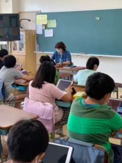 学年で同じ内容の活動に取り組むときなどに、1人の担任が話したり指示を出したりすることを、zoomを活用して他の学級の子どもたちも聞いて、学年全体が同じ歩調で活動に取り組むことがあります。