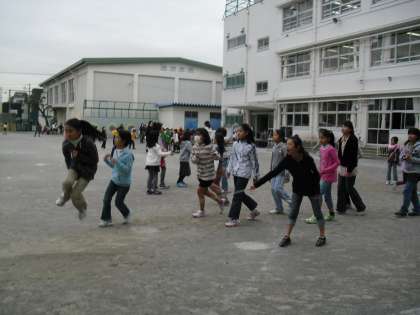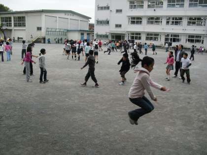 今日の昼休みの様子です。なわとびコンクールに向けて学級ごとに大なわ練習をしたり、個人種目の練習をしたり校庭は大にぎわいです。校庭だけでなく屋上で練習をしている学級もあります。