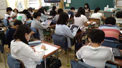 単元のまとめで、プリントをやったりキュビナ(AIドリル)をやったり。
